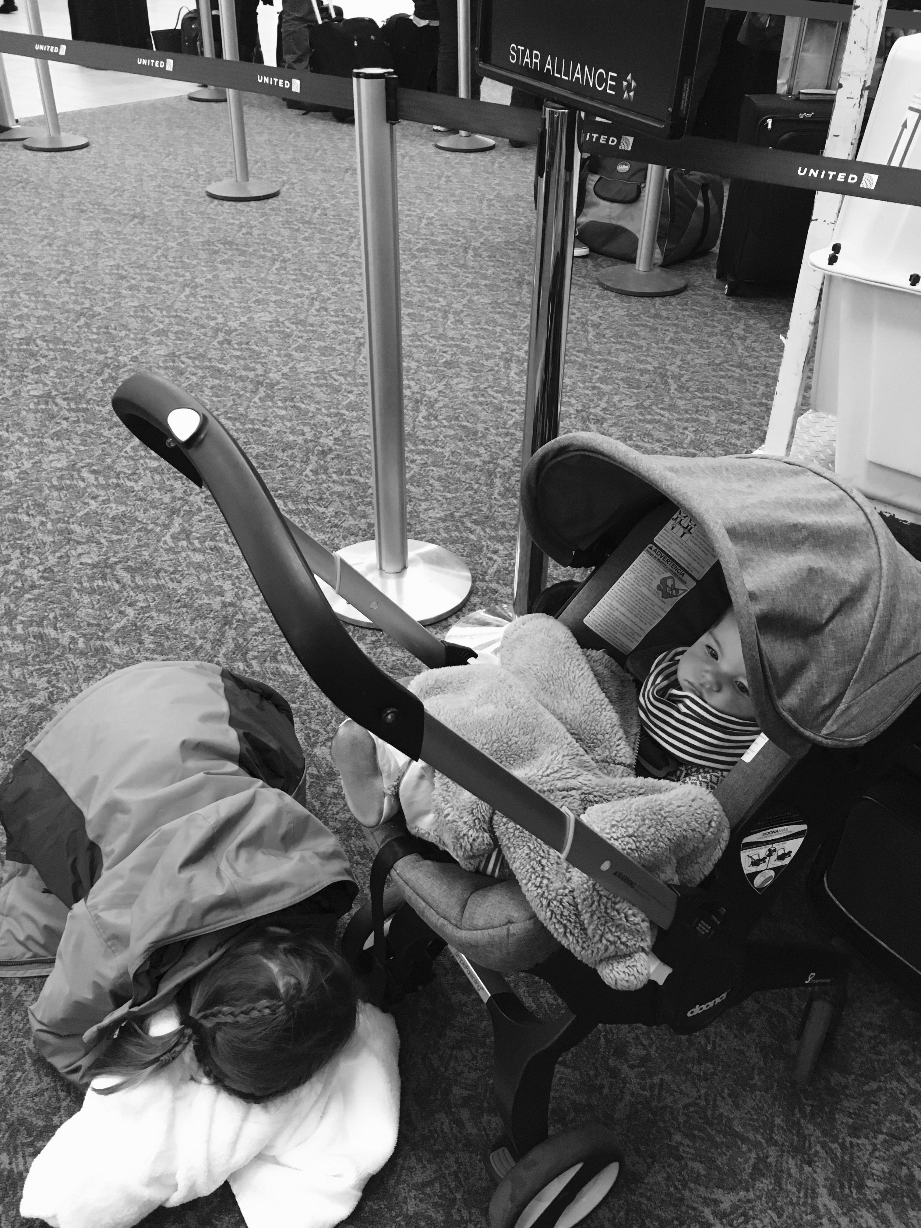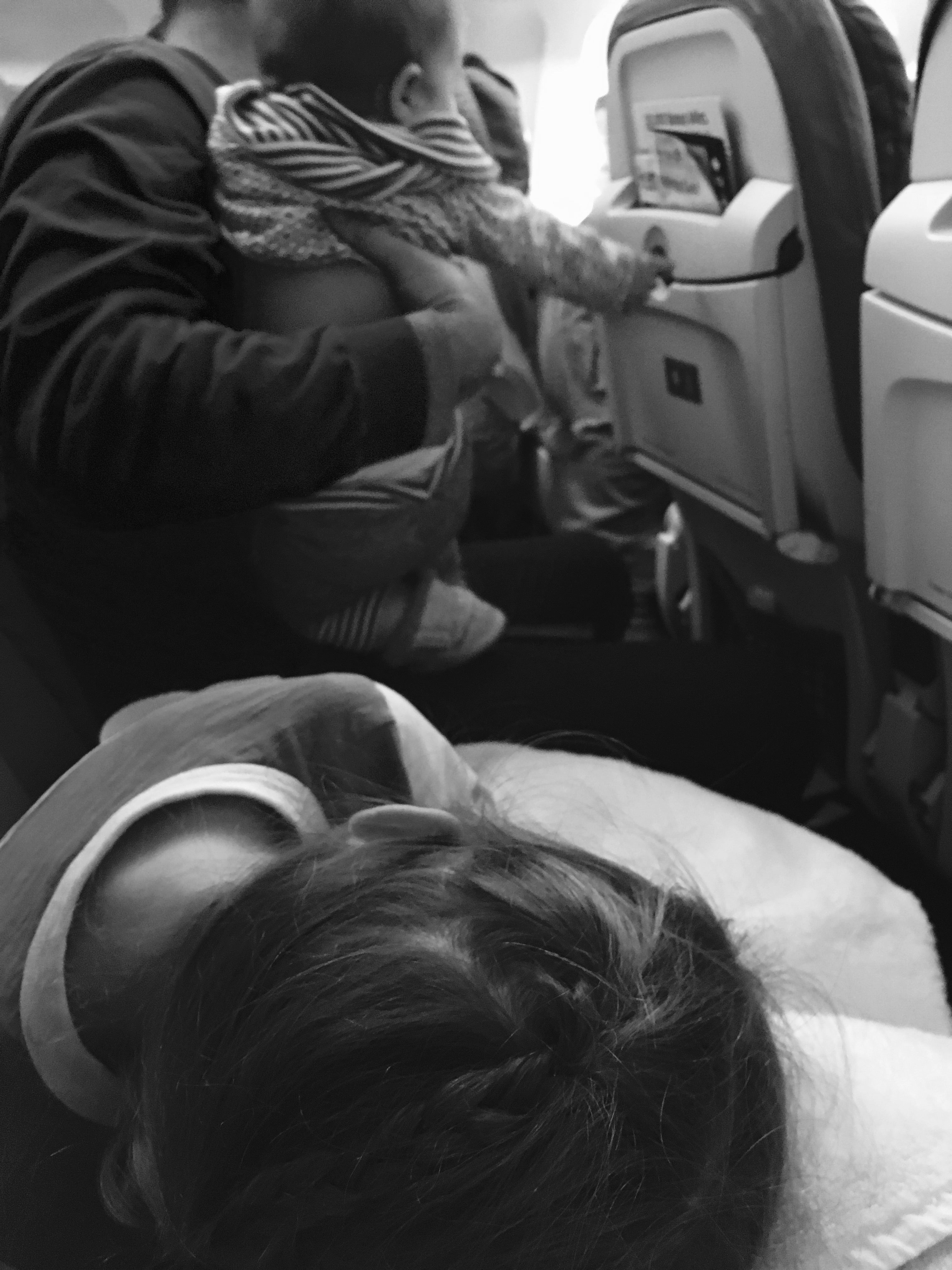 Ultimately, and against the odds, we did made it on the plane where she promptly passed out on the pillow that we had brought for the baby to lay on.