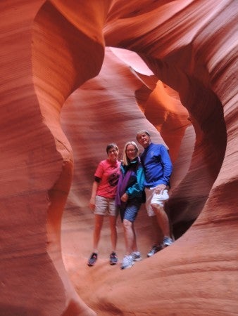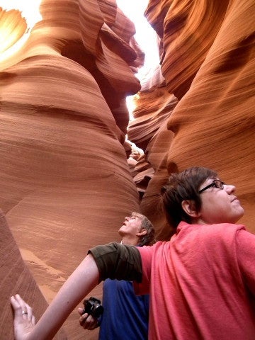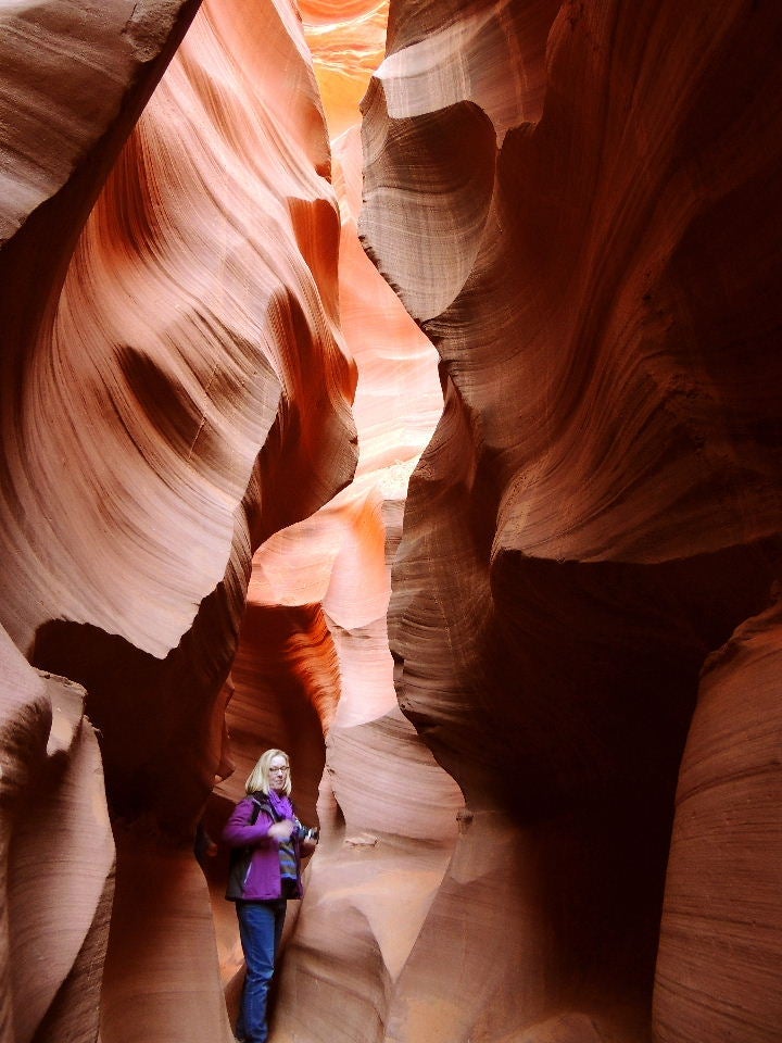 Slot canyons are so named due to their general narrowness, the width of the walkway, the width of this hallway, varies from a few feet at certain turns to about 15 feet at the widest expanse. My wife, Grandma Points, who usually trends toward claustrophobia, is not affected by these canyons.
