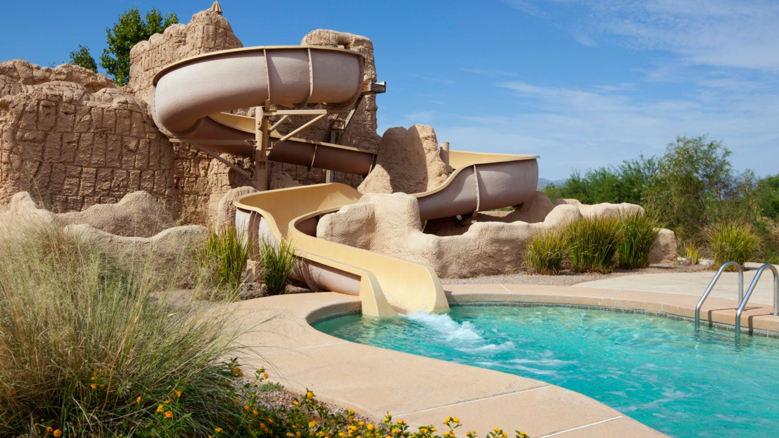 This Scottsdale resort looks to be very family friendly and has a big pool complex including a 900-foot lazy river ride and a 110-foot waterslide. There are also poolside cabanas, an adult pool, a children's play area and shallow pool, and a FlowRider!