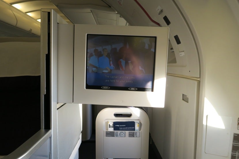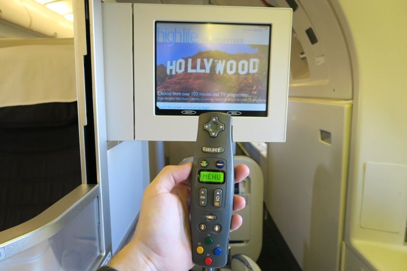 Once in the sky, we explored the IFE system, which clearly showed its age — the touchscreen monitors required a firm touch and the screens weren't as clear as other IFE screens we'd seen recently.