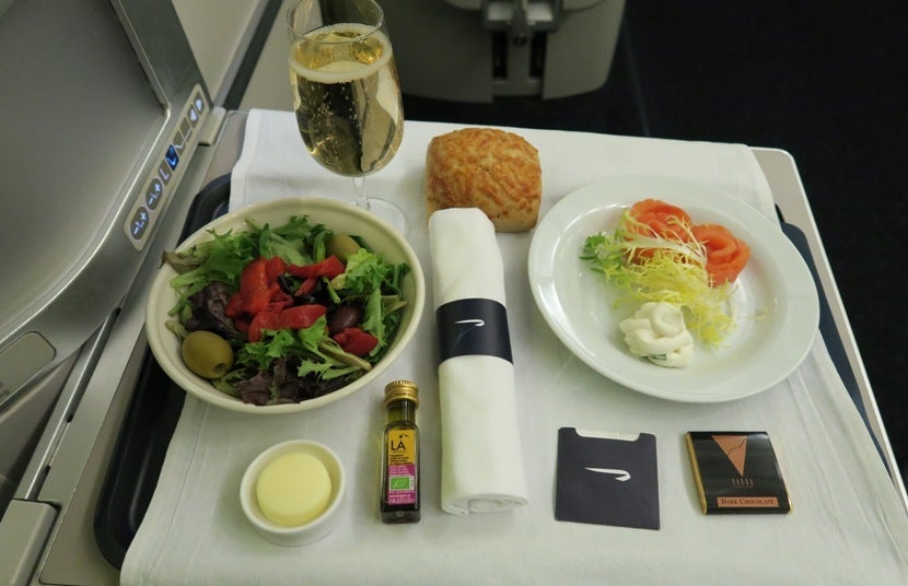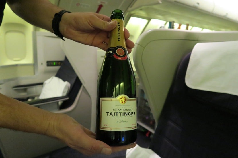 Along with the menus, the flight attendants offered a choice of Champagne, orange juice or water. We enjoyed sipping Champagne as we looked over the menu. The attentive flight attendants offered refills frequently during the boarding process.