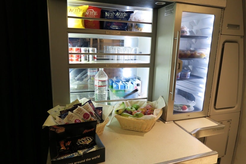After geeking out watching the planes come and go for a bit, we grabbed some snacks and finished some last-minute work using the decent Wi-Fi. On our way out, we used our drink coupons for some bottled Naked juice smoothies to go.