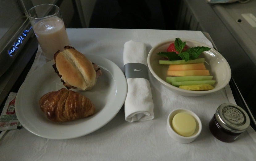 Sure enough, about 5:45am, she reached over the partition to gently rub my shoulder to wake me, letting me know that breakfast was about to be served. It was a lovely touch of personalized service.