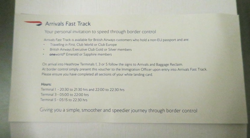 During descent, the flight attendants passed through the cabin to hand out Arrivals Fast Track cards, allowing us to speed through border control. While border control was rather empty during our arrival, these likely would have been handy if we were traveling during a busier time.