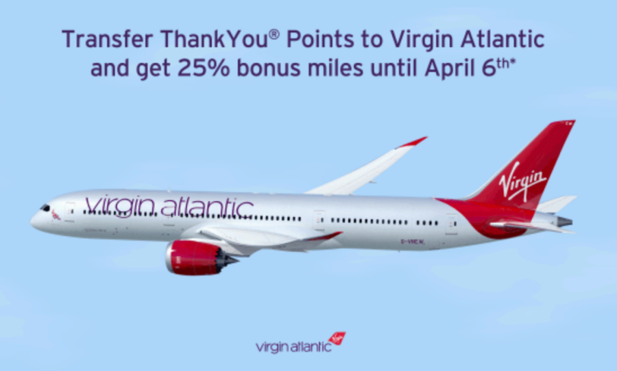 Transfer ThankYou Points to Virgin Atlantic With a 25% Bonus
