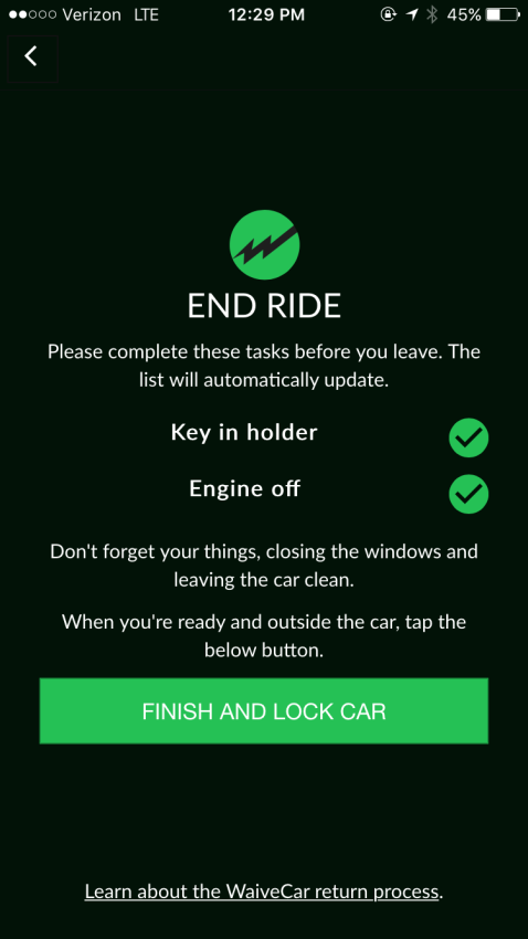 After having my account approved, I first tried WaiveCar during a test drive with founder Isaac Deutsch in late January. Like every technology start-up, there were some bugs, but the core functionality was working. I wanted to wait a little while and come back to check out how the app has progressed before writing this review for TPG, so I checked back in with WaiveCar this past week to see how things were working.