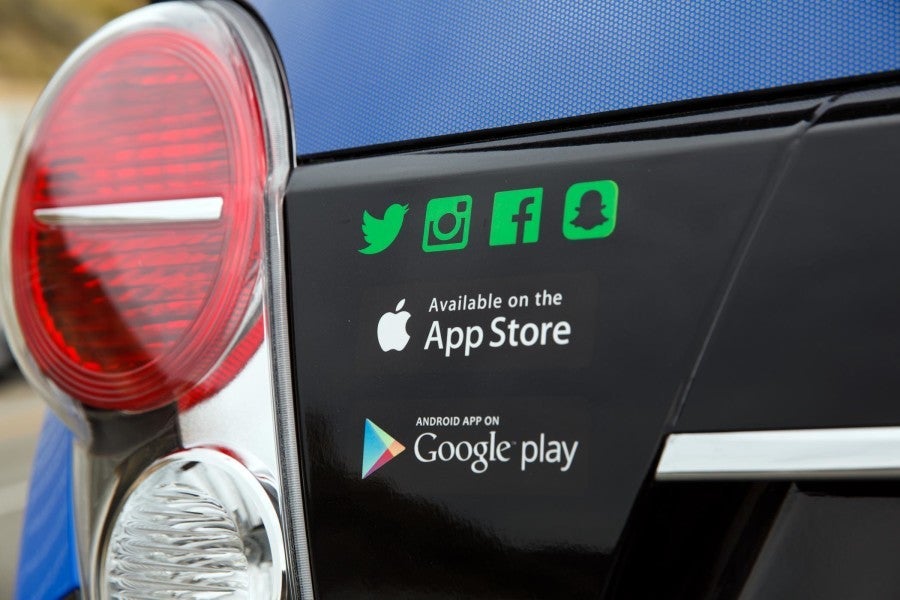 WaiveCar utilizes a fleet of Chevrolet Spark electric cars. The five-door cars are small, but as a 6'3" driver I was surprised by how spacious it was inside — plenty of headroom. I was expecting the worst cramped conditions and a barrage of advertisements, like one would expect on low-cost carrier Ryanair. Instead, I was thrilled to learn there are no plans to place any advertising inside the car. This was really key for me and I quickly found myself forgetting that I was driving a car displaying ads at all.