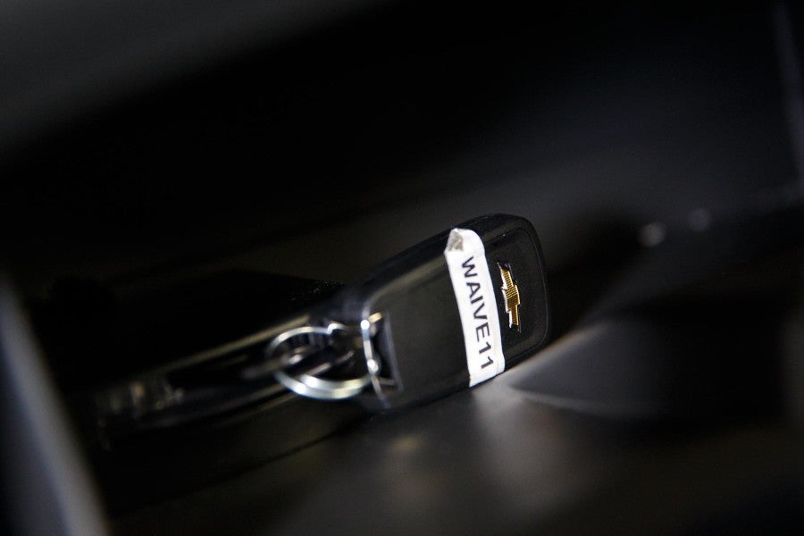 When you arrive at your car, the app will prompt you to start your ride and unlock the doors to the car. Inside the glove box you'll find your key inside a fob holder. Remove the key from the holder in the glove box and put it in your pocket. It is not needed for the ignition — just push the blue power button behind the steering wheel.