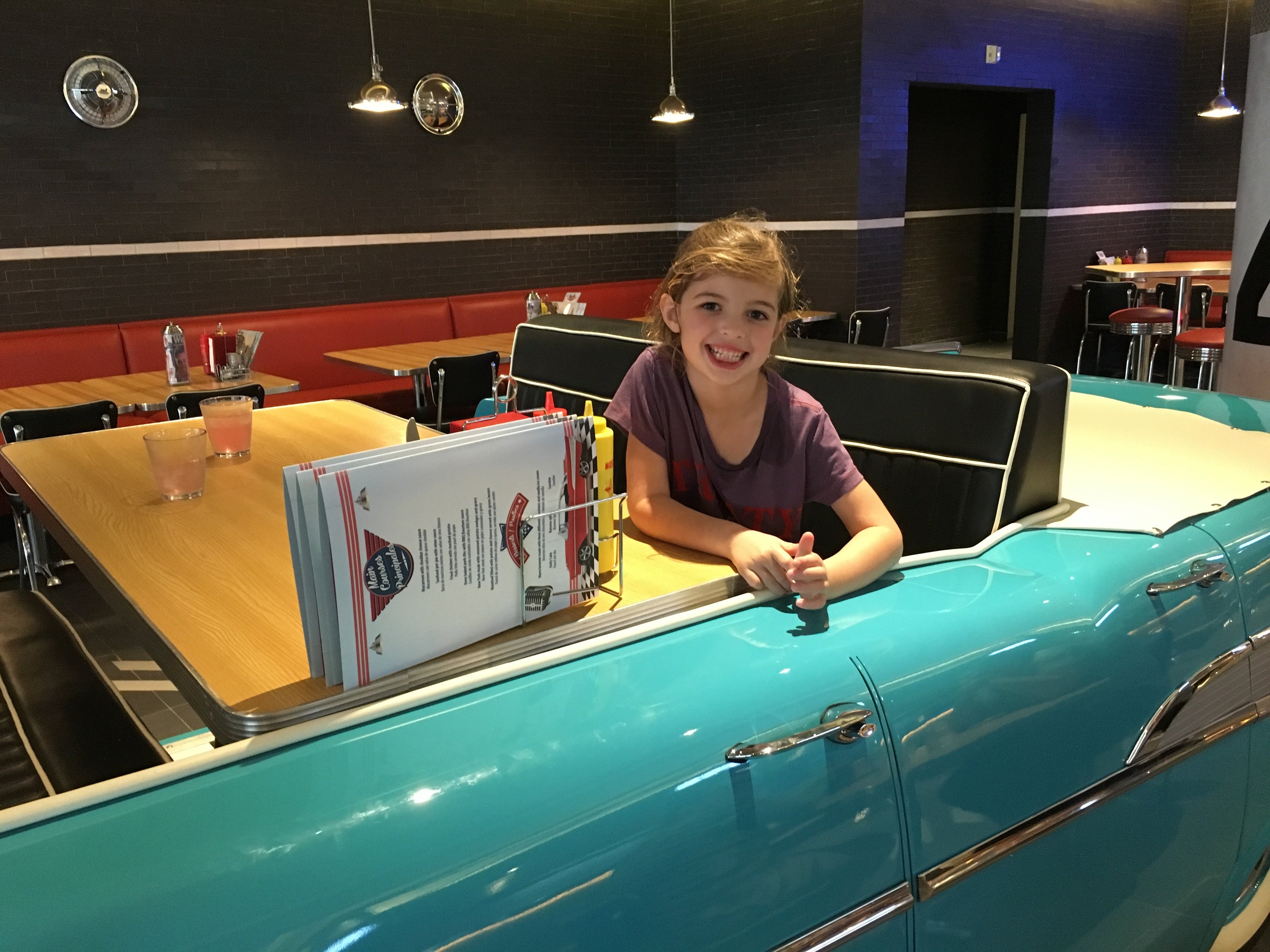 Right next to Lorenzo's on the pool level is Chevy's Diner and this place looked super cool, so we had to try it even if diner food at a Mexican resort sounds like a stretch. The reason this place looked awesome is that it has an actual retro Chevy as the focal point of the restaurant that you can sit in and eat your meal. As you can see, our six year old thought that was amazing!