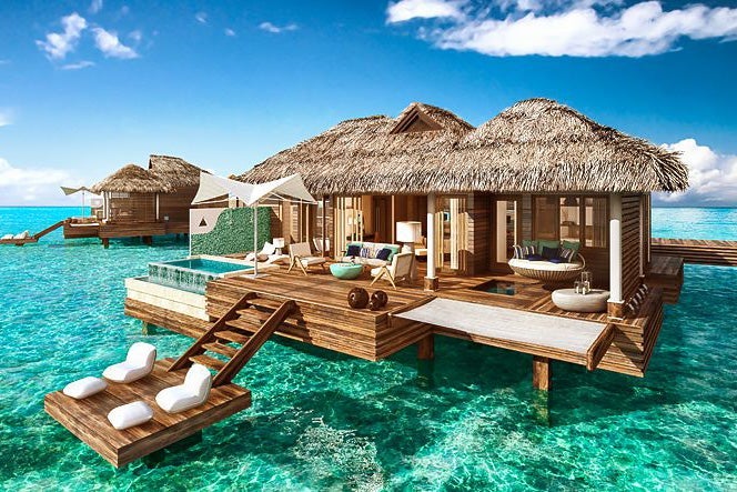 You can now book one of five overwater villas at the Sandals Resort in Montego Bay, Jamaica, for travel starting on November 15. These accommodations have been in the works for about two years, and they include a glass floor, private infinity pool, a jacuzzi with an outdoor shower, floating water hammocks and butler service.
