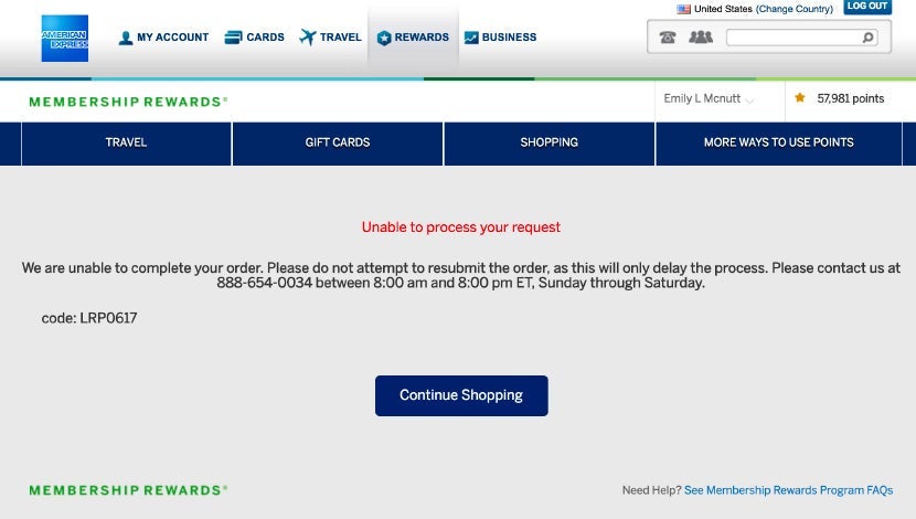 It's likely that that's happened here, which may have prompted Amex to take action against many users' accounts — even those of long-standing customers who have never been flagged for fraud in the past. We've heard from many readers who signed up for last week's 100k offer and are now unable to redeem their Membership Rewards points — points earned through another card are affected as well, if that card is linked to the same rewards account. According to this Reddit thread, the issue is widespread.