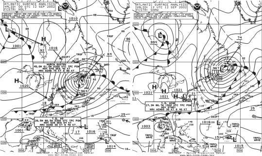 Finally, I go over the forecasted weather at our final destination. The FAA has weather requirements for your destination that, if not met, will require the dispatcher to add enough fuel to get to an alternate destination. Basically, for an hour before to an hour after your scheduled arrival, the weather where you're flying has to have clouds no lower than 3,000 feet above the surface and visibility greater than three miles. If an additional destination is required, we'll try to find an airport close by. There are other events that may require additional fuel on the flight, too, like arriving in the New York area during peak travel times, if there's thunderstorm activity at your arrival time and other oddities (like the President arriving at your destination), which will require air traffic controllers to close the airport temporarily.