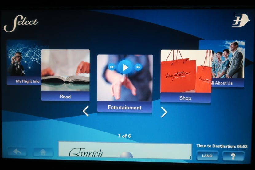 The system certainly took some getting used to as it functioned slightly differently than those used on other long-haul aircraft. In particular, swiping to scroll through choices didn't always work — in some cases, you instead needed to click on the scroll buttons.