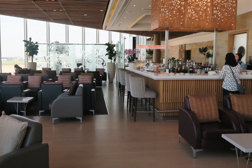 The Malaysia Airlines Golden Lounge featured a bar and impressive views of the airfield.