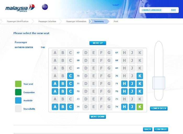 Any available seat could be chosen for free at check-in on Malaysia Airlines' website.