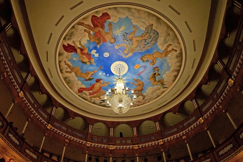 Be sure to also visit the Teatro Adolfo Mejia (Teatro Heredia), where the ceiling, also painted by Enrique Grau, looks like this (see above). First opened in 1905, the theater hosts stage productions, film and music festivals.