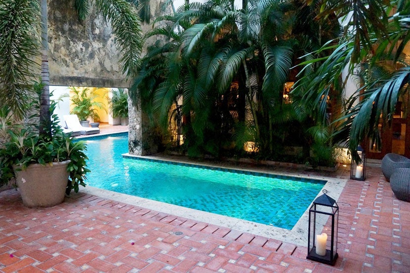 Right on the main drag, the glossy InterContinental Cartagena de Indias offers high-end design, an infinity pool with a glass-wall view of the sea, and umbrellas and lounge chairs for guests across the street on the sand. Rates start at about $125 or 35,000 IHG Rewards points per night in June.