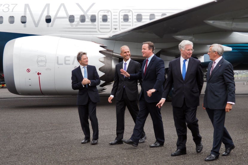 The show kicked off this morning, and my first stop was Boeing's booth, since I hoped to score early access to the brand new Boeing 737 MAX, which is set to launch next year. Thankfully, that effort paid off — I managed to get on board — but due to a security mixup I also ended up with a pretty cool opportunity to (almost) rub shoulders with Britain's (now outgoing) PM, who seemed to be in an excellent mood throughout his Boeing booth visit.
