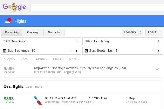 Heart set on traveling to a particular destination? Check to see if it's worth flying out of a nearby city. For our flight to Hong Kong last Thanksgiving, we flew out of Houston (IAH) for $769 round-trip. The prices out of our hometown of Austin (AUS) on the same travel days were more than $1,300! Often, you can also save quite a bit by flying into an airport near your destination.