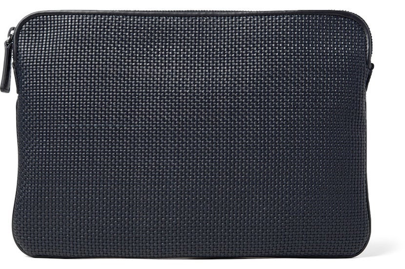 If you have a thirst for the finer things and you find yourself shopping on sites like Mr Porter, the sleek Ermenegildo Zegna Pelle Tessuta Leather Pouch will be your perfect pouch match. Crafted in Italy using the brand's signature Pelle Tessuta technique (ie. the surface mimics that of a woven textile), the pouch is trimmed with gunmetal hardware and fully lined in jaunty herringbone fabric. This storm-blue leather pouch features a detachable wrist strap and has internal slit pockets. ($795, measurements are 8.2" x 11.8", mrporter.com).