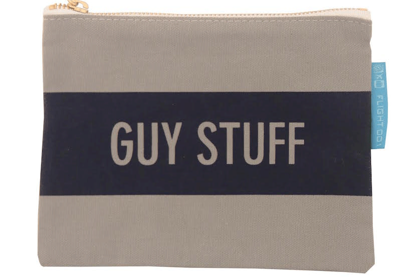 For a small pouch with personality (and if you haven't found any of these other options masculine enough), the Flight 001 Guy Stuff Pouch will make it clear that this pouch is just for guys. Made from a heavy duty cotton canvas, it's the perfect place to store your toiletries, small tech, chargers, cords and travel documents. ($18, measurements are 6"H x 7.8"W, flight001.com).
