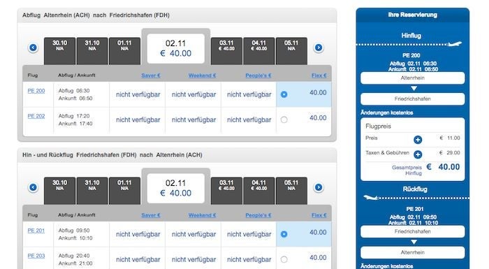 The flight is operated on an Embraer 135 with 50 economy seats and costs ~$45 per ticket on all the days we searched (actually just $12 for the ticket itself plus taxes and fees).