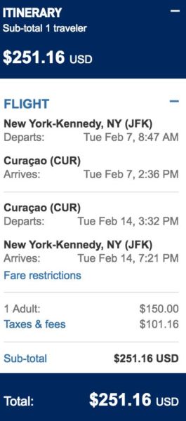 New York (JFK) to Curacao (CUR) for $251 round-trip: