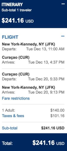 New York (JFK) to Curacao (CUR) for $241 round-trip: