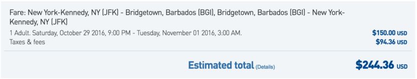 New York (JFK) to Barbados (BGI) for $244 round-trip in October/November: