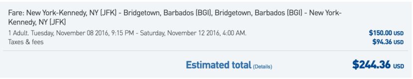 New York (JFK) to Barbados (BGI) for $244 round-trip in November:
