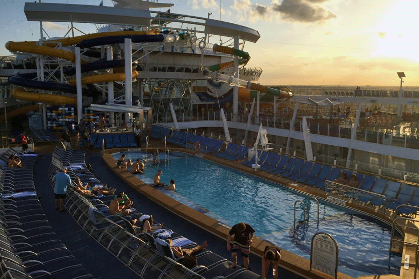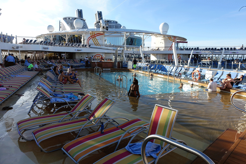 Back to the Sports and Pool Zone though, where you can also find several large pools, all of which are about four feet deep. When that ship is moving, there's a natural wave pool effect that's quite fun, too. Here's a peek at one of the pool areas...