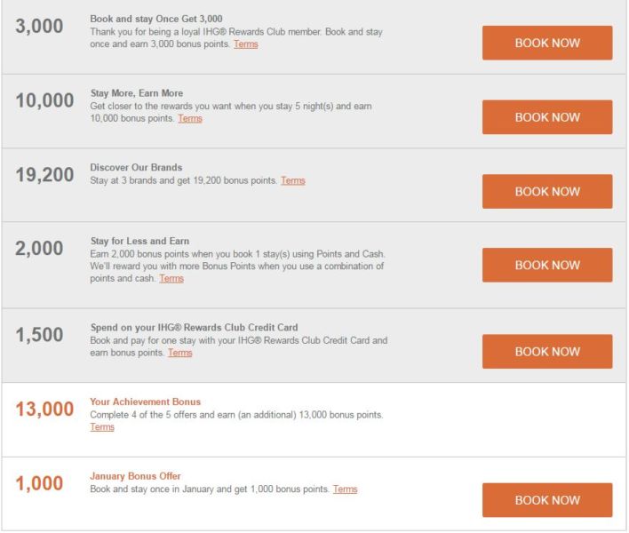 Each quarter, IHG offers its Rewards Club members an individualized slate of "Accelerate" challenges. Challenges include staying a certain number of nights, at a certain number of brands or using a certain type of rate plan (i.e., Points and Cash).