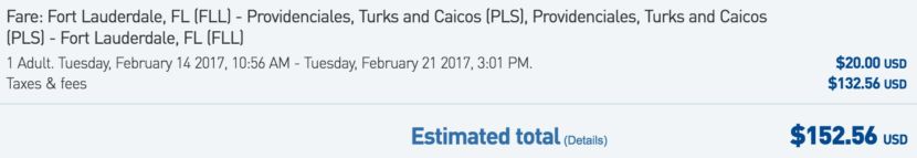 Fort Lauderdale (FLL) to Turks and Caicos (PLS) for $153 round-trip in February: