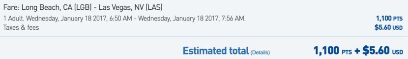 Long Beach (LGB) to Las Vegas (LAS) for 1,100 points + $5.60 one-way in January: