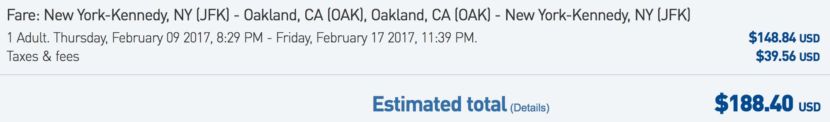 New York (JFK) to Oakland (OAK) for $188 round-trip in February: