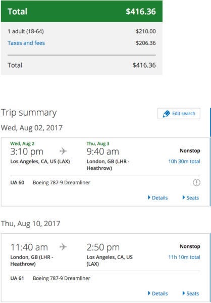 Los Angeles (LAX) to London (LHR) for $416 round-trip on United: