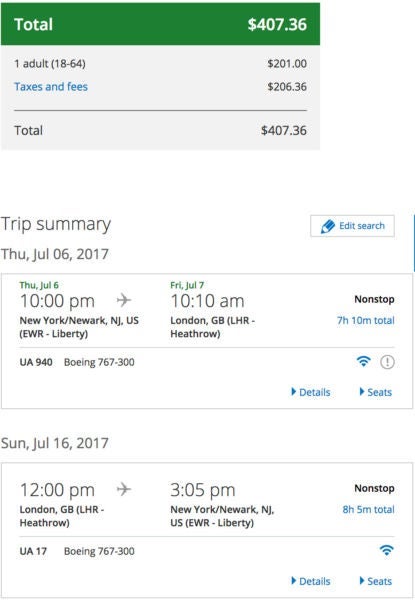 Newark (EWR) to London (LHR) for $407 round-trip on United: