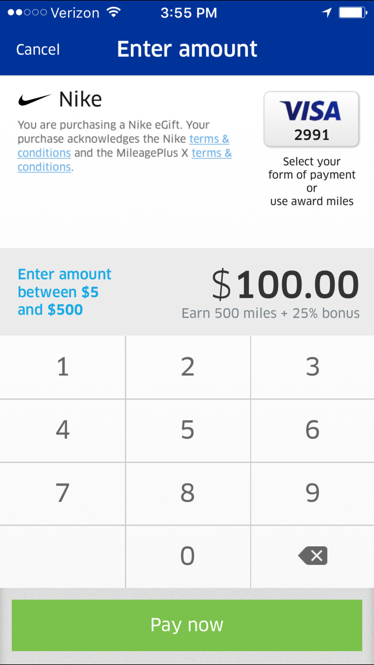 Earn 5 miles per dollar at Nike through the MileagePlus X app.