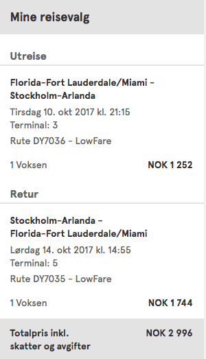 Fort Lauderdale (FLL) to Stockholm (ARN) for 2,996 NOK (US$349) round-trip on Norwegian: