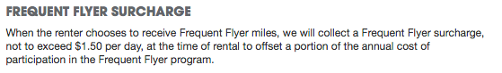 [pullquote source="TPG Reader Ryan"]I just reviewed my car rental receipt with Dollar Rent A Car. I didn't recognize the "FF SURCHARGE" and was surprised to find that it's a fee I paid to Dollar to cover the Alaska Airlines miles I "earned" through the booking. Do other rental companies charge a fee for miles?[/pullquote]