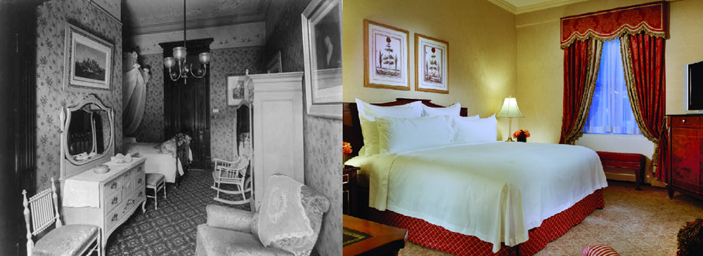 While the rooms had clearly been updated, there were still regal touches of old-school decor. Heavy drapes, touches of gold and fringe and antique-style dressing tables, mirrors and benches are some of the items that seem to reflect the hotel's origins. While it's not clear how much rates were when the hotel opened, according to this article by the New York Post, in 1955, you could get a room for just $21.