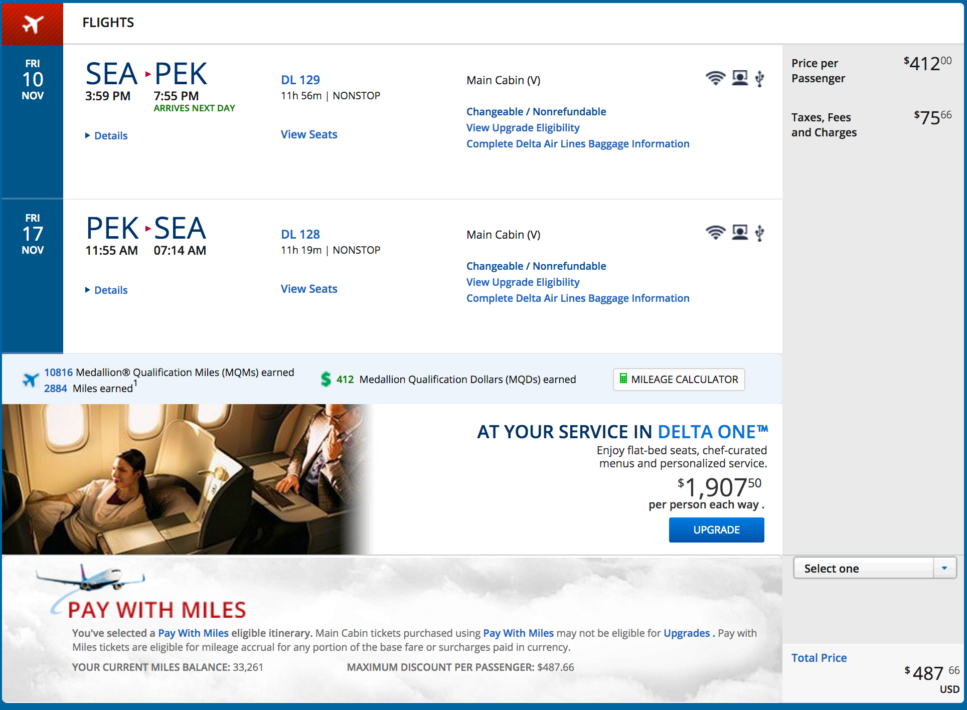 Seattle (SEA) to Beijing (PEK) for $488 round-trip on Delta: