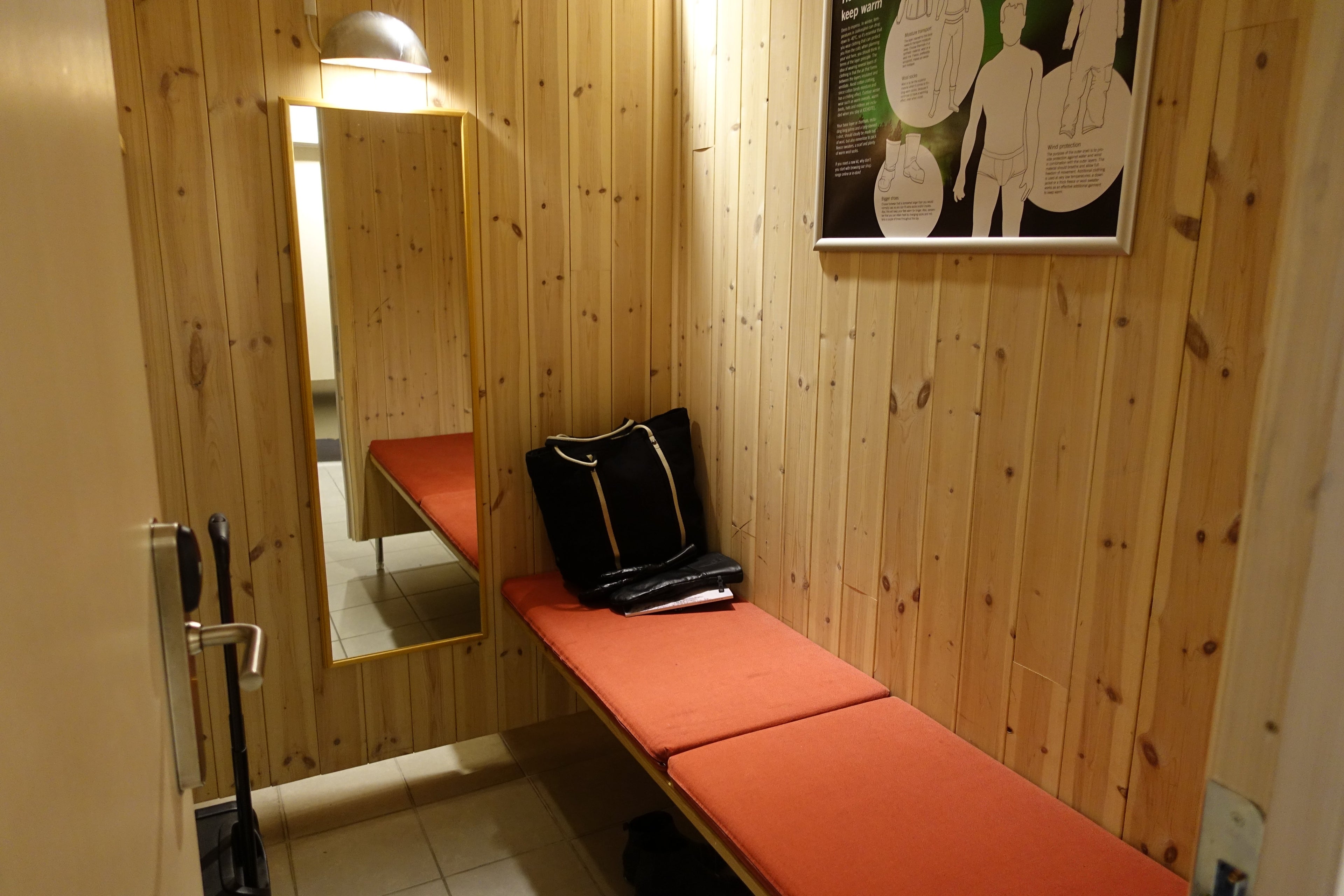 I will say that it's a bit of a tight squeeze. If you're coming here with your family or with a significant other, it might be hard trying to change or get ready in such a small amount of space. Nevertheless, it's nice to be able to have a private retreat and somewhere to go when your "Cold Room" is open to the public between 10:00am and 6:00pm.