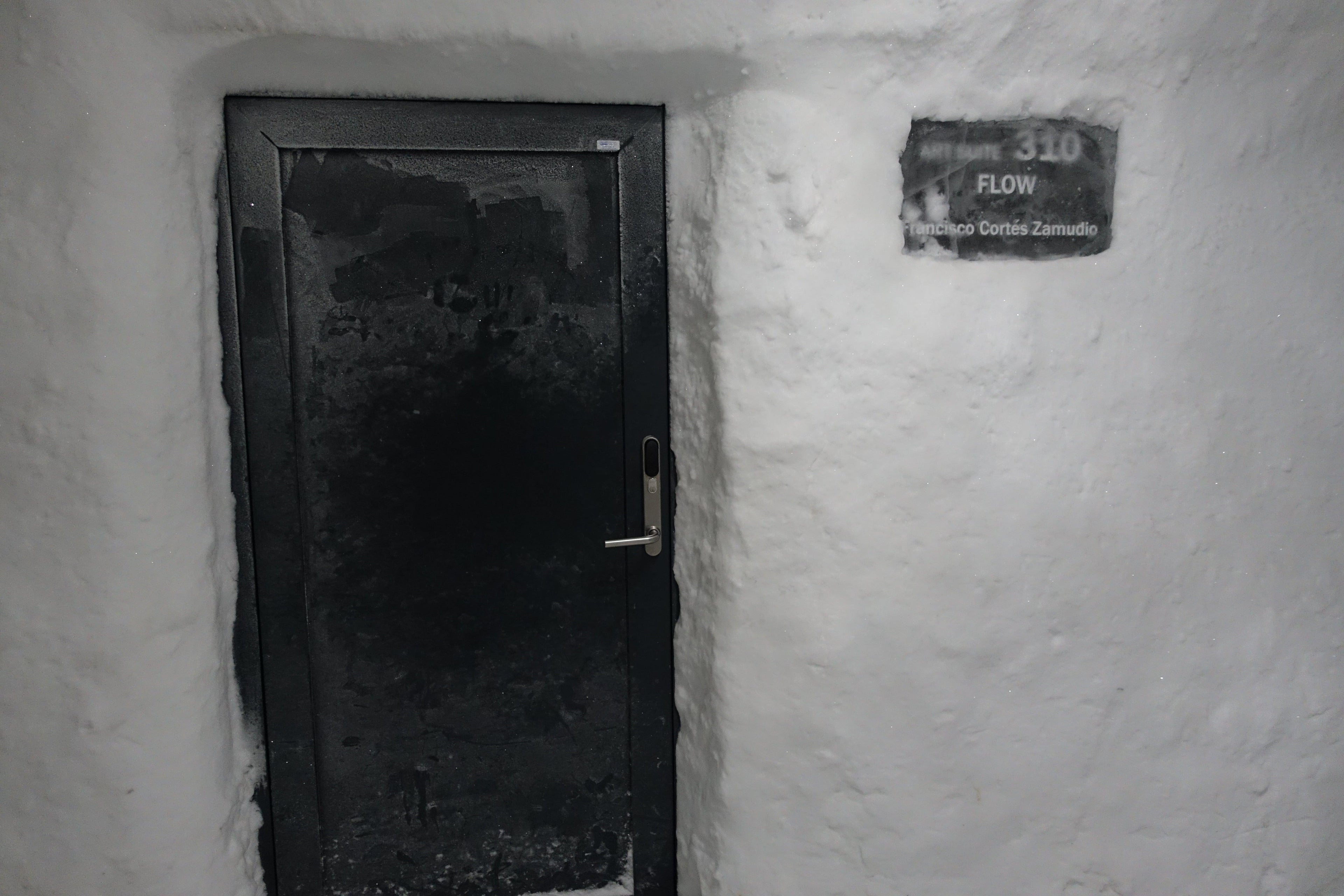 To give you a sense of just how cold it is inside the 365 building (-5˚C, or 23˚F), I'll let this picture of the (heavy) door do all the talking.