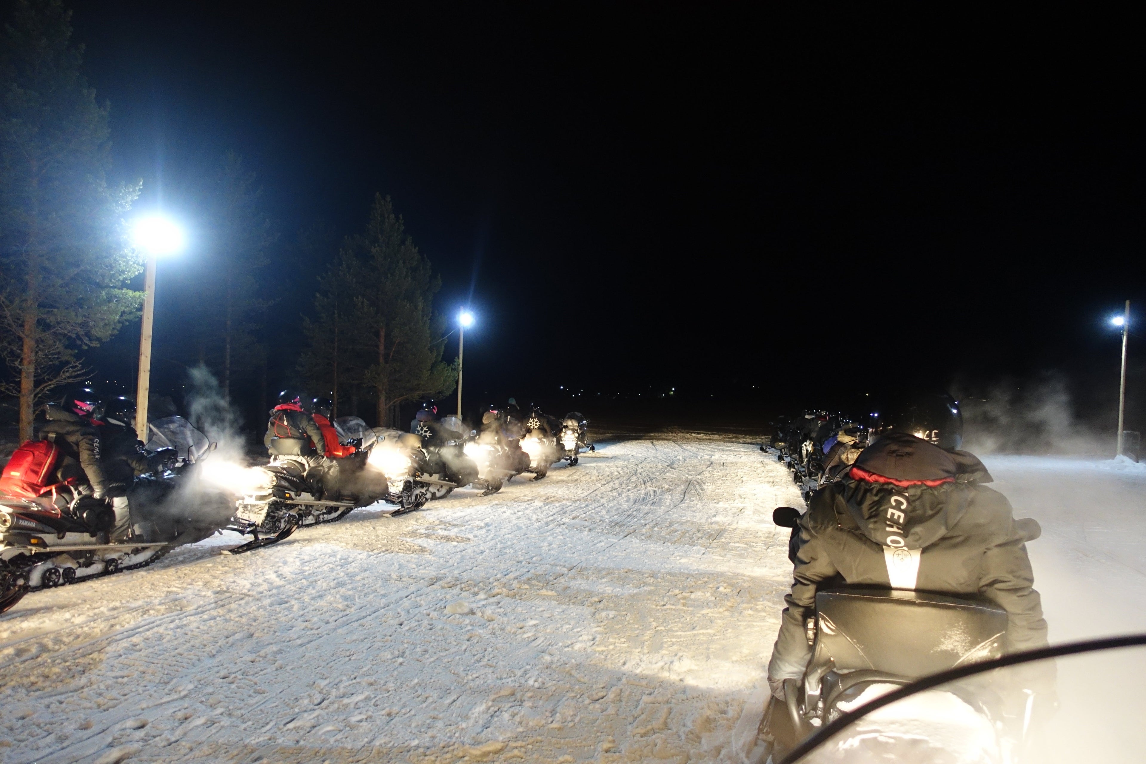 On the night of my tour, we were split into two groups. We got our gear and zipped through the woods on snowmobiles along narrow paths.