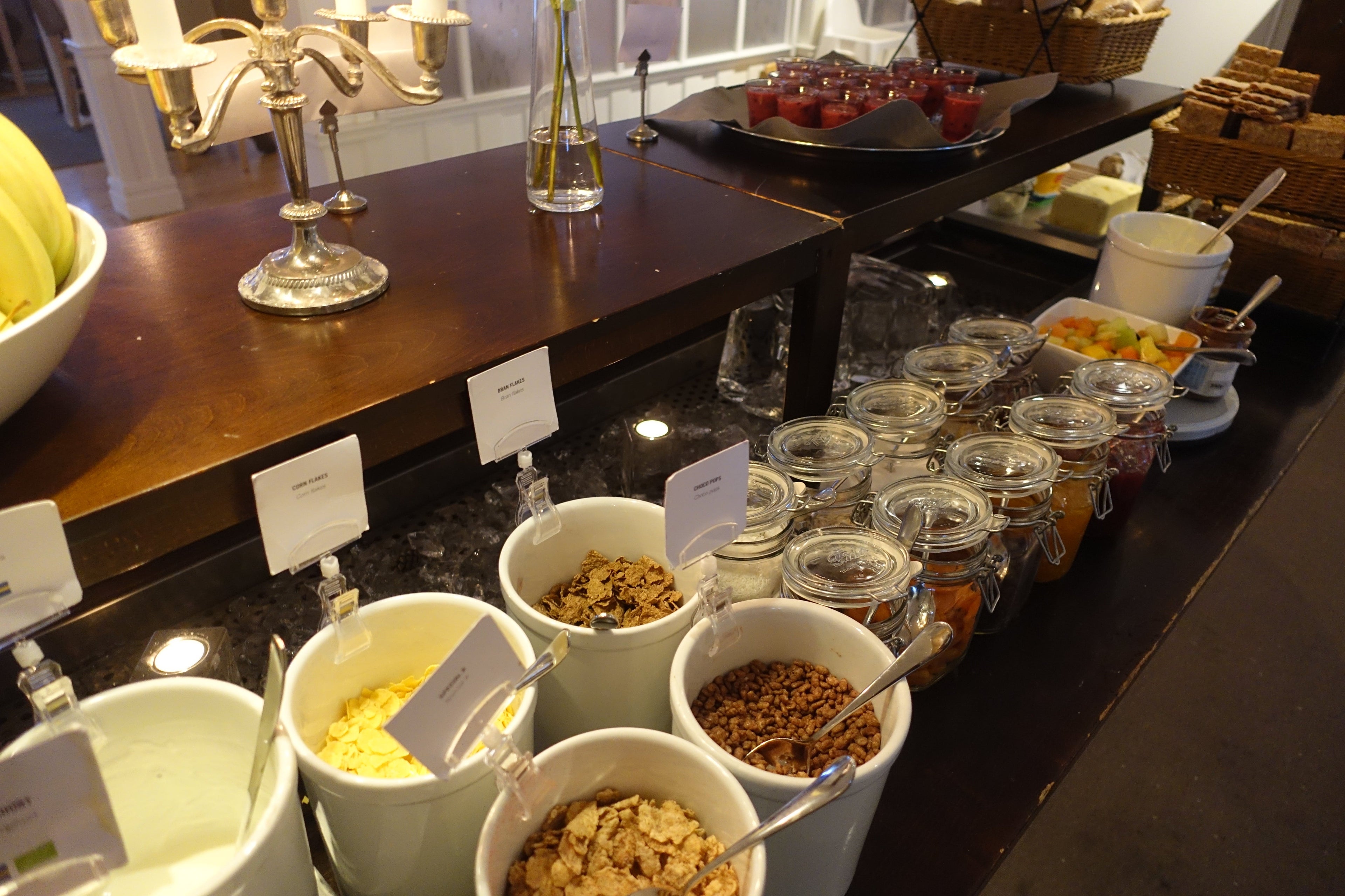 There was also a selection of cereals, yogurts and fruity toppings. Hot food items included sausages, eggs, pancakes and sautéed mushrooms, among others. Overall, it was a nice breakfast spread, but there were no cook-to-order choices that I could see, which would have been a nice touch.