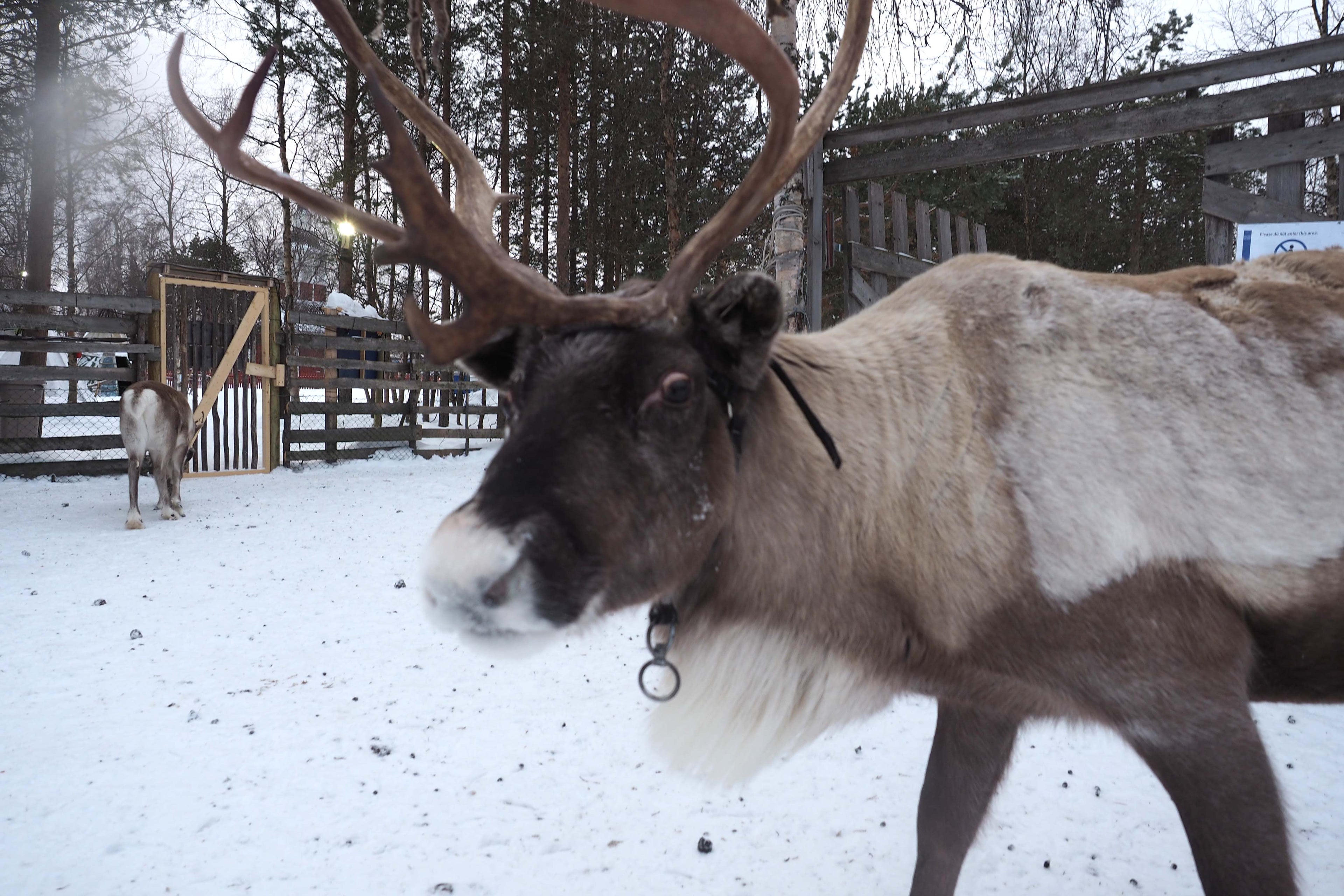 Of course, the highlight of the Sámi museum is its reindeer exhibit. There's a reindeer pen where you can hang out with these big, beautiful creatures — they're a little aggressive toward one another, but are very gentle to humans. If you want to feed them, which you can do for an additional fee, the largest and most dominant of the group will definitely let you know he's there.