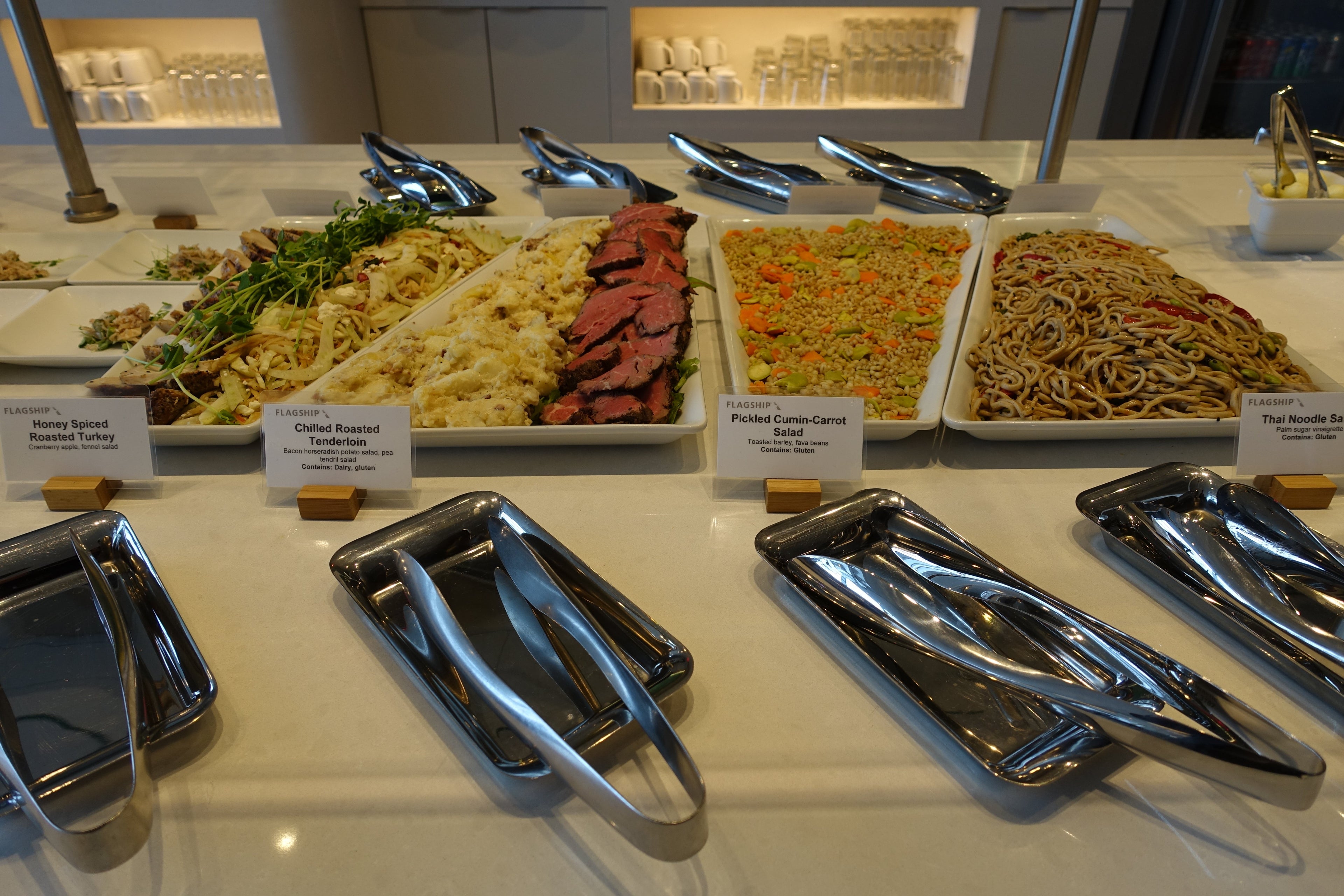 Update 5/26/17: AA has shared its a-la-carte menus for the Flagship Lounge as well, which offers a mix of buffet and menu items akin to United Polaris: