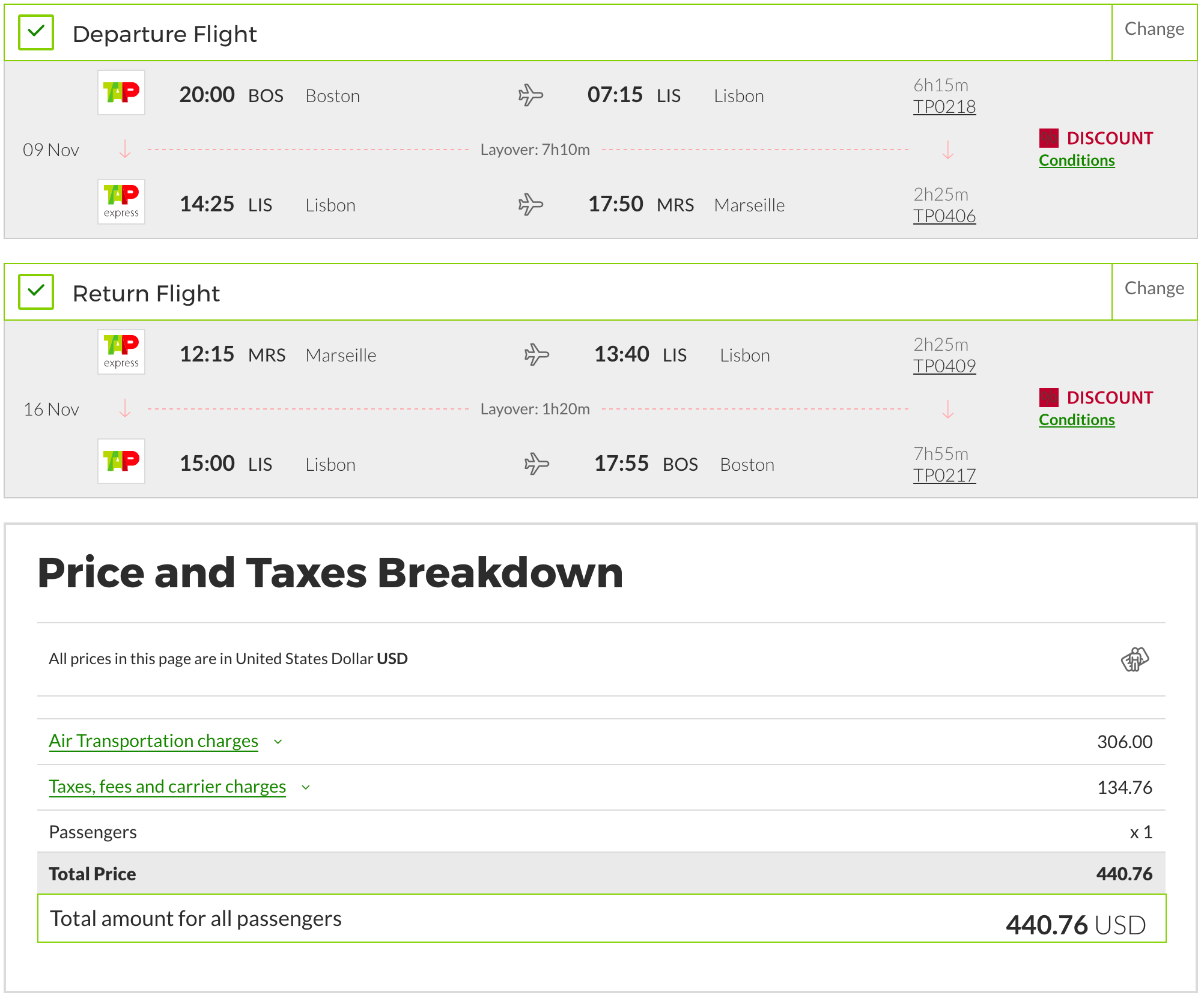 TAP Portugal is currently offering great fares from several US cities to France this fall. You can fly from East Coast cities such as Boston (BOS), Miami (MIA) and New York (JFK) to French destinations including Paris (ORY) and Marseille (MRS) with tickets starting at just $368 round-trip. Cheap flights are generally available from November 2017 through the end of the schedule in early April 2018, though exact availability depends on your origin and desired destination. Begin your search in Google Flights and then you can complete booking directly with the airline or through an OTA such as Expedia.