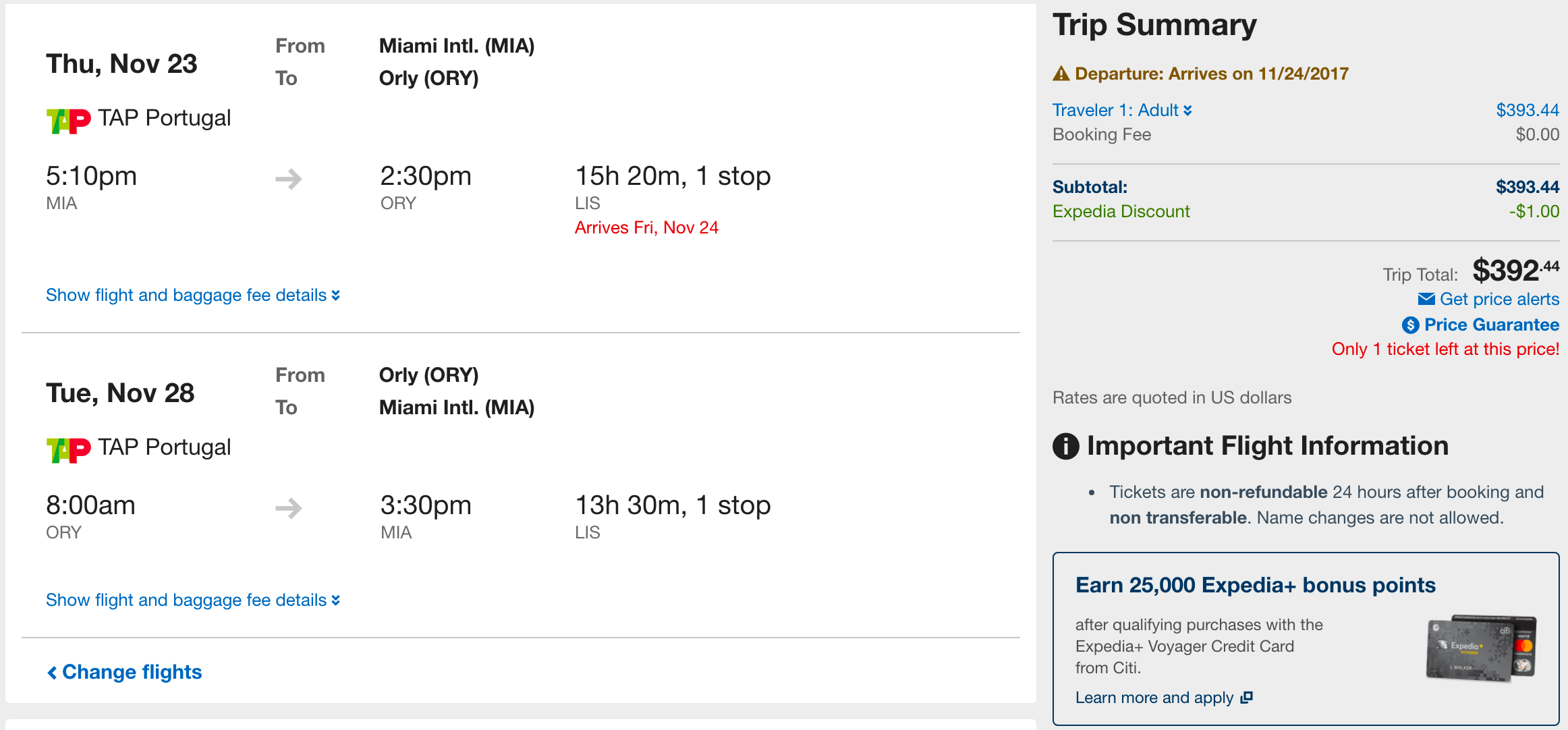 Miami (MIA) to Paris (ORY) for $392 round-trip in November:
